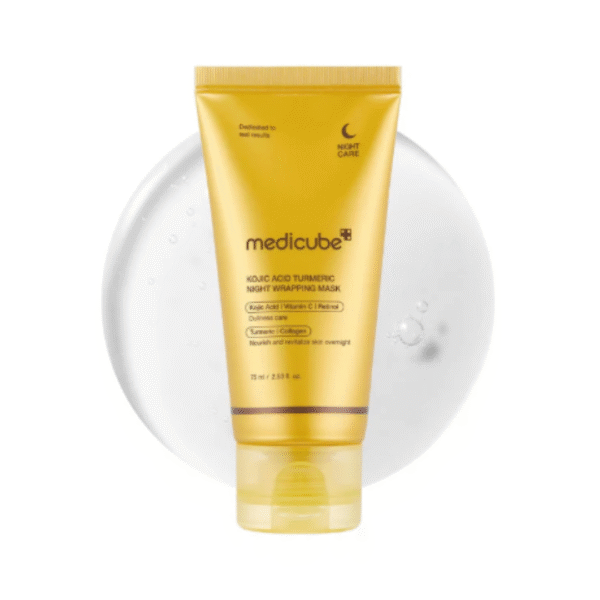 Medicube Kojic Acid Turmeric Night Wrapping Mask is a night care face mask made with kojic acid, turmeric extract, and collagen to help brighten, smooth, and even out your skin tone. It works overnight to give you glowing, refreshed skin by morning.